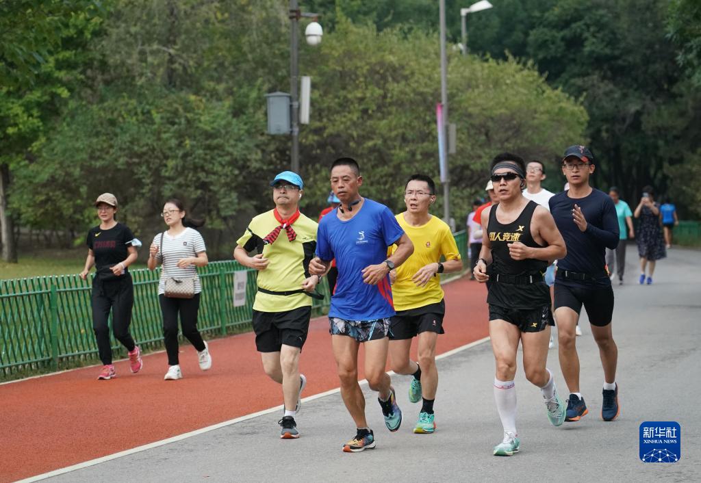 2022年9月11日,市民在北京奧林匹克森林公園南園跑步健身。 新華社記者 任超 攝