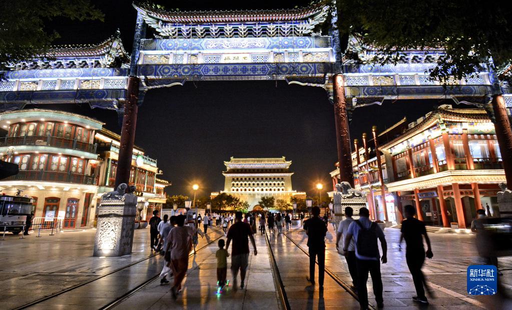 2022年7月6日,市民游客夜游前門商業街。 新華社記者 李欣 攝