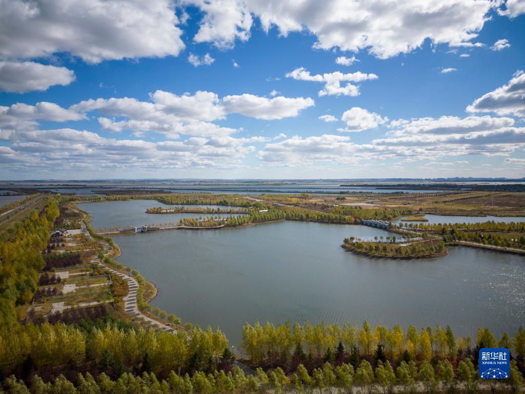 這是10月4日拍攝的哈爾濱呼蘭河口濕地公園內的景色(無人機照片)。