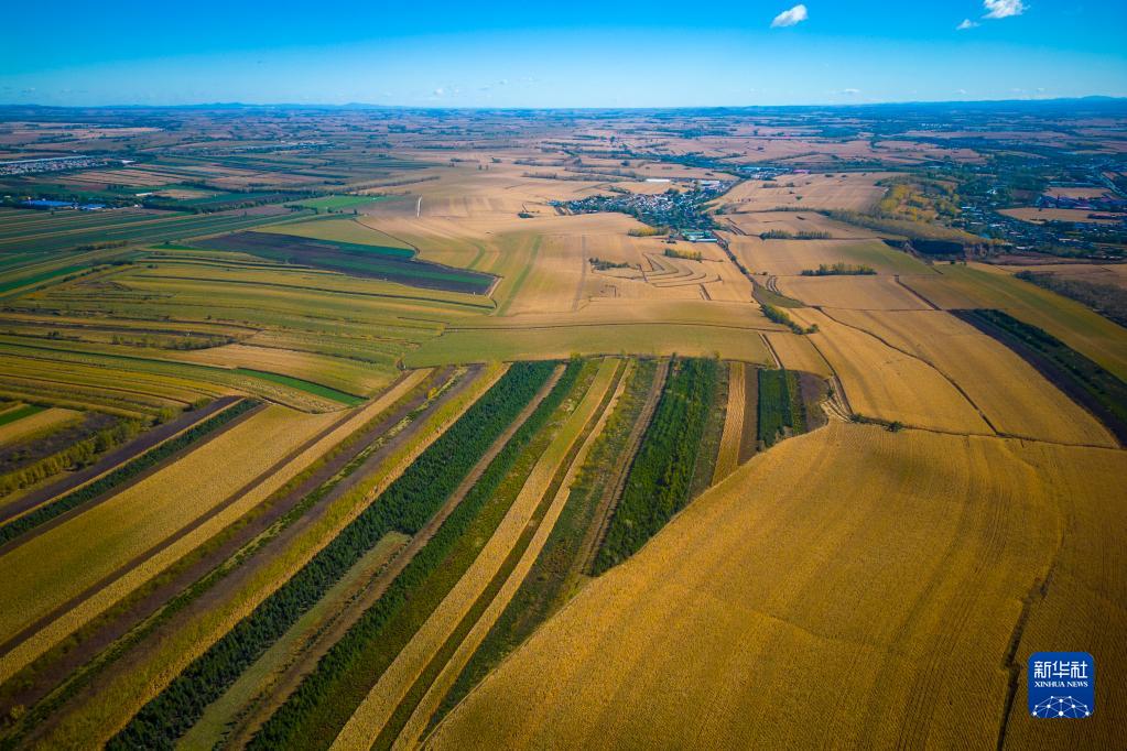 這是10月4日拍攝的哈爾濱市道外區天恒山附近的農田秋景(無人機照片)。