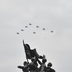 10月5日,在印度尼西亞雅加達,飛機在國民軍建軍77周年慶祝活動上表演。