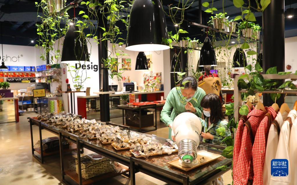 游客們在位于上海楊浦濱江的奧地利珍得巧克力劇院商店內(nèi)挑選巧克力(2022年9月24日攝)。