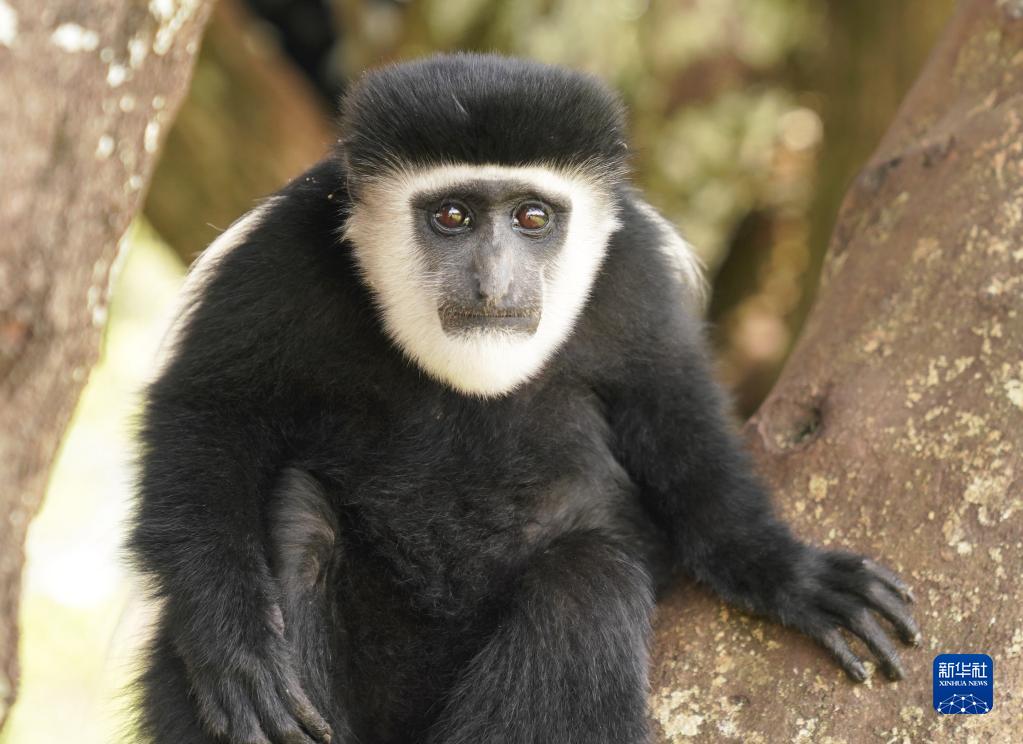 這是10月5日在肯尼亞納紐基拍攝的東非黑白疣猴。