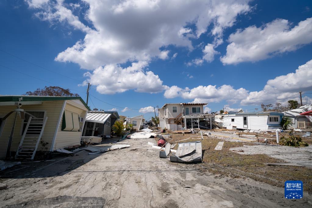 這是10月4日在美國佛羅里達州邁爾斯堡拍攝的遭颶風(fēng)“伊恩”破壞的建筑。 新華社發(fā)(羅蘭多·洛佩斯攝)