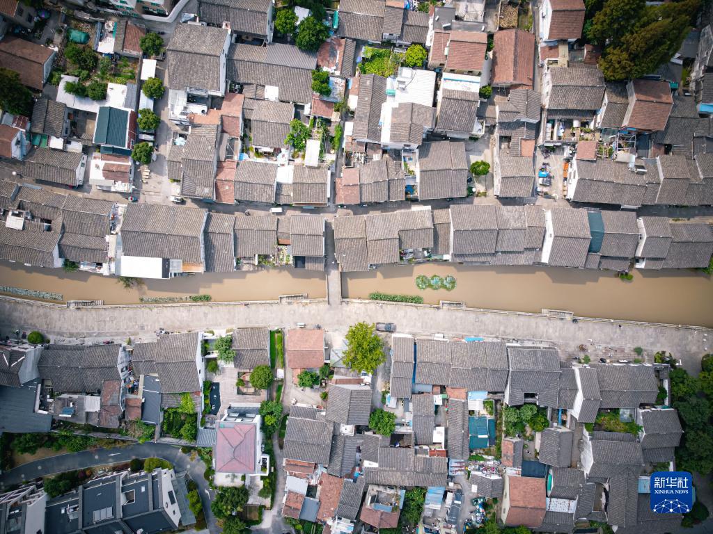 從杭州西興老街流淌而過的浙東運河(2022年9月27日攝,無人機照片)。