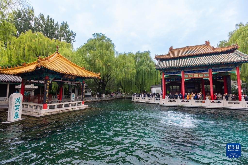 10月6日,游客在山東濟南趵突泉景區(qū)賞泉。