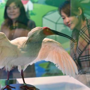 朱鹮在陜西寧陜朱鹮野化放飛基地管理站內(nèi)的過(guò)渡飼養(yǎng)區(qū)內(nèi)活動(dòng)(10月10日攝)。
