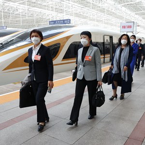 10月13日,來自內蒙古自治區的黨的二十大代表乘高鐵抵達北京北站。這是當日首個抵京的京外代表團。新華社記者 張玉薇 攝