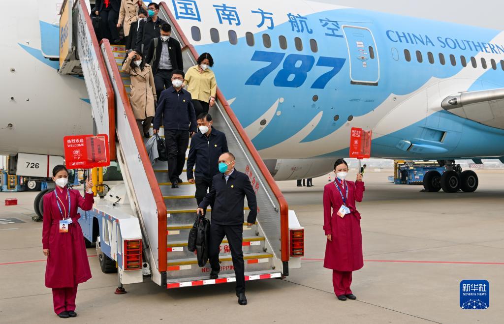10月13日,來自新疆維吾爾自治區的黨的二十大代表乘飛機抵達北京首都國際機場。新華社記者 陳益宸 攝