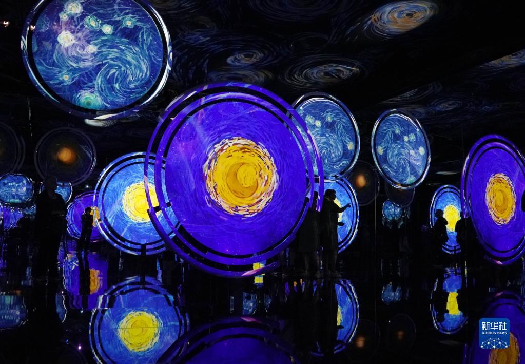 10月12日,在意大利羅馬,觀眾在展覽上的沉浸式多媒體廳參觀。