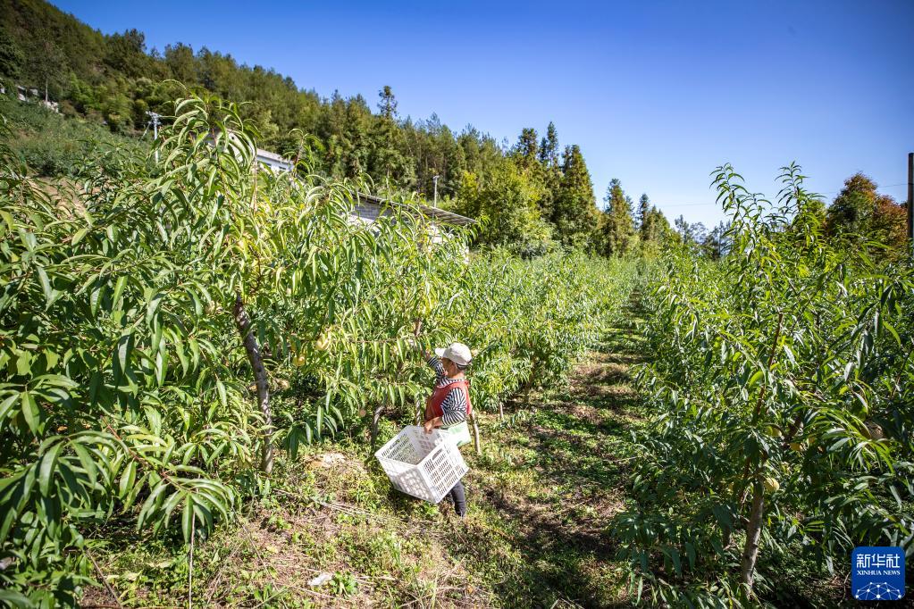 10月13日,在重慶市巫溪縣峰靈鎮譚家村,村民在采摘成熟的冬桃。