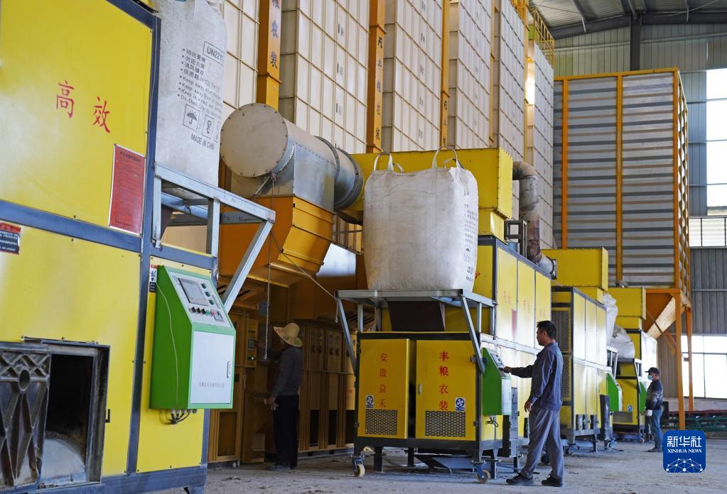 在江西省南昌縣大田農社烘干車間,農民使用烘干設備將稻谷烘干(10月11日攝)。