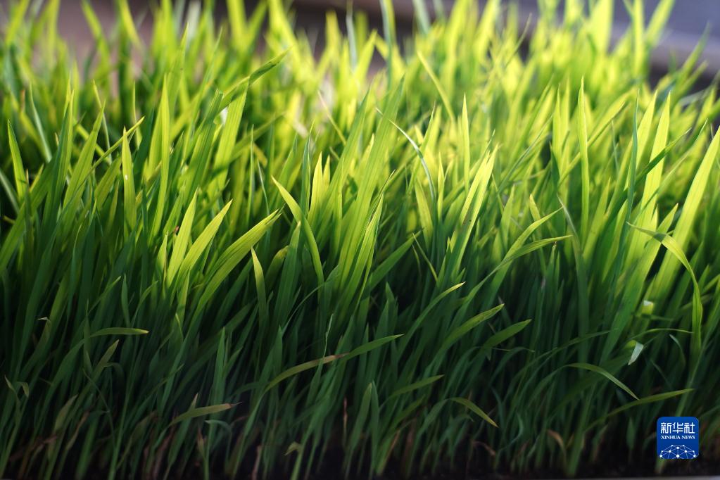 在江西省南昌縣大田農社的恒溫育秧室里,秧苗長勢良好(7月20日攝)。