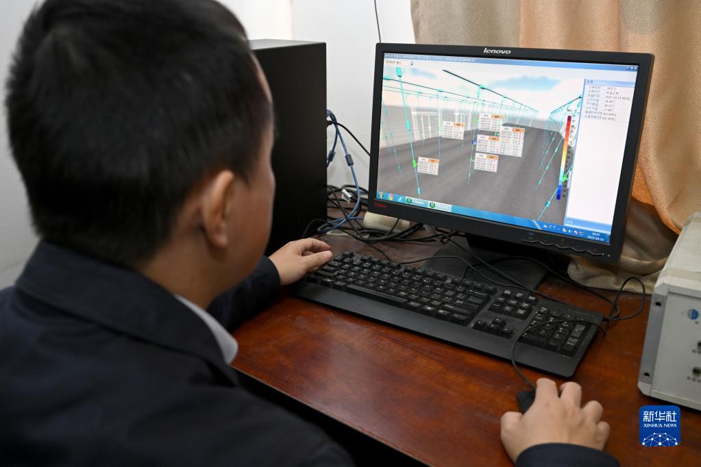 10月13日,在中央儲備糧合肥直屬庫有限公司本部,工作人員通過智能化糧情監測系統監測糧食溫度。