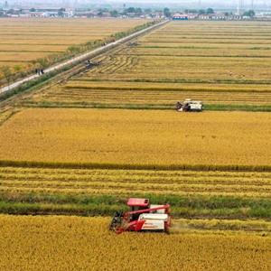 金秋時節,天津市津南區小站鎮的1.4萬畝小站稻進入集中收割期。