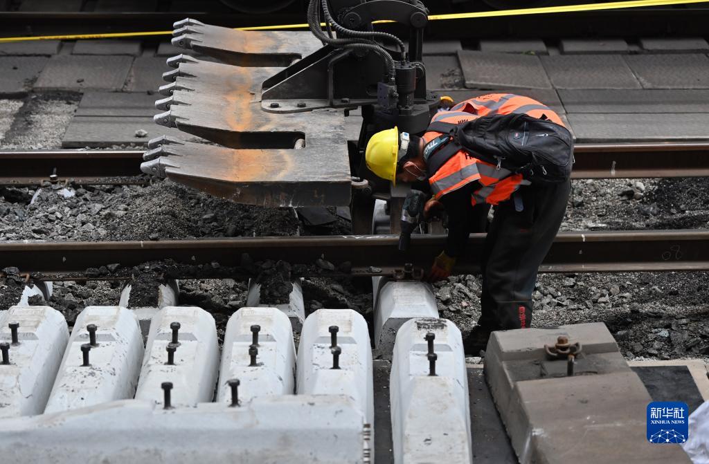 連日來,中國鐵路北京局集團有限公司天津工務段在天津西站線路設備提升改造會戰中,為充分利用“天窗”時間,使用中型換枕機進行機械化換枕作業,相較原來人工換枕的方式大大提高了施工效率。