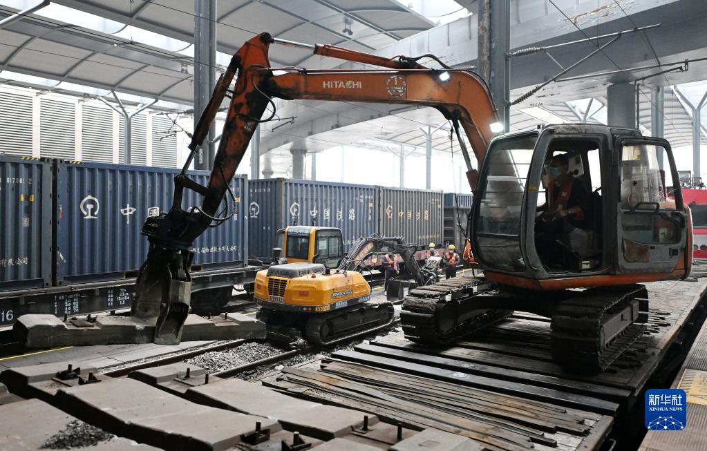10月14日,施工者在天津西站操作機(jī)械設(shè)備進(jìn)行換枕作業(yè)。