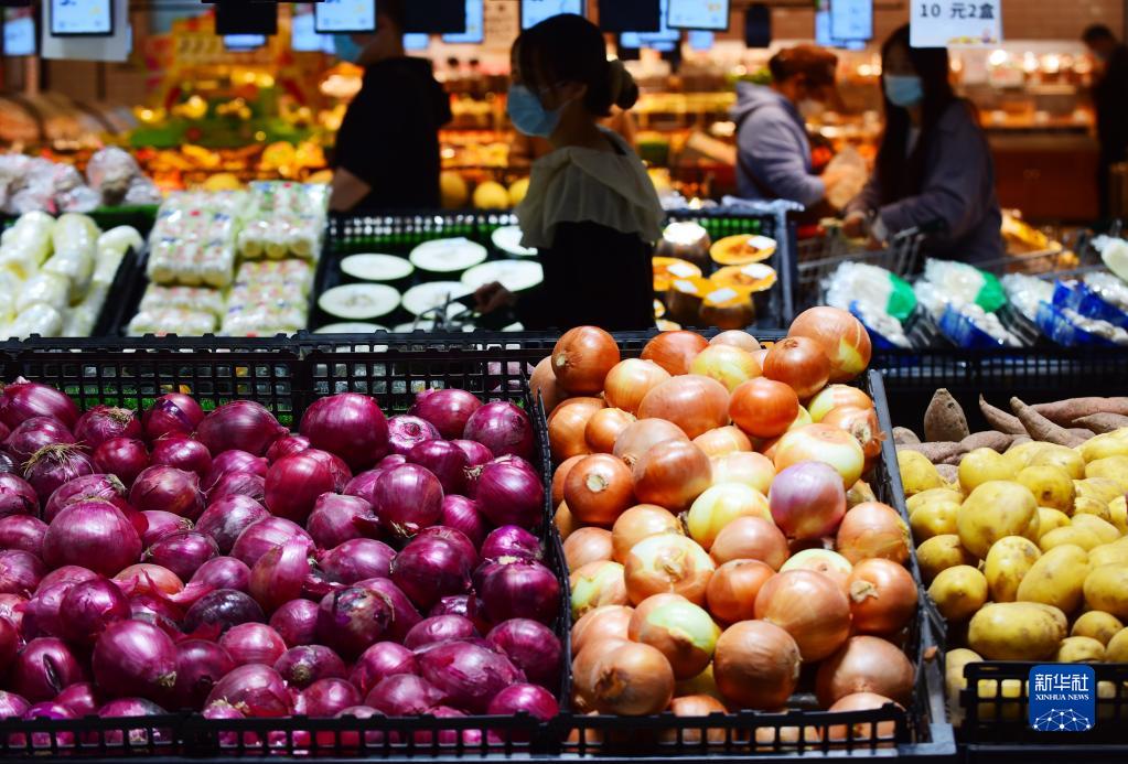 10月14日,消費(fèi)者在江蘇省無錫市一家超市選購蔬菜。