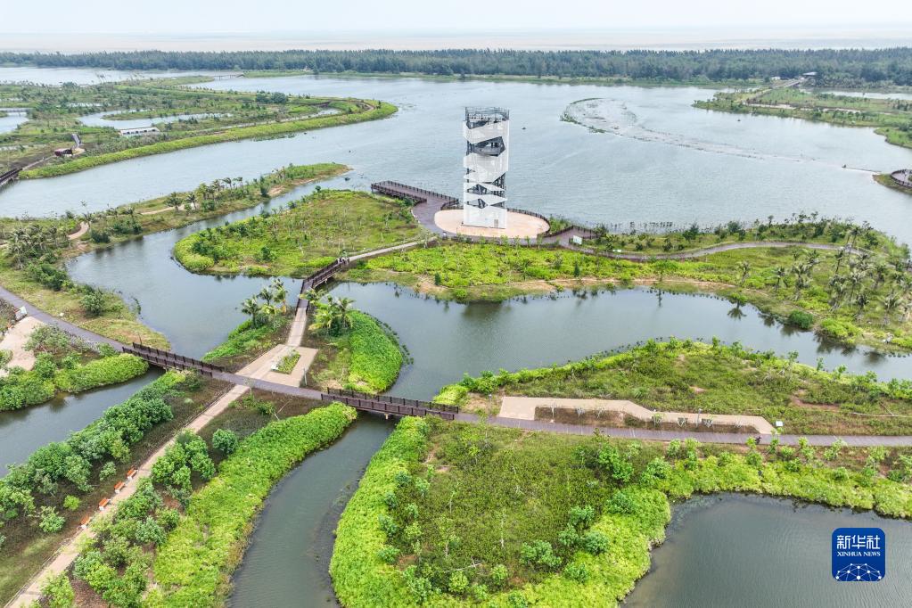 邁雅河濕地公園位于海南省海口市江東新區。據了解,當地通過退漁還濕、河道疏浚、連通水系和種植植被等方式,將昔日的魚塘改造為濕地公園,成為市民休閑散步的好去處。