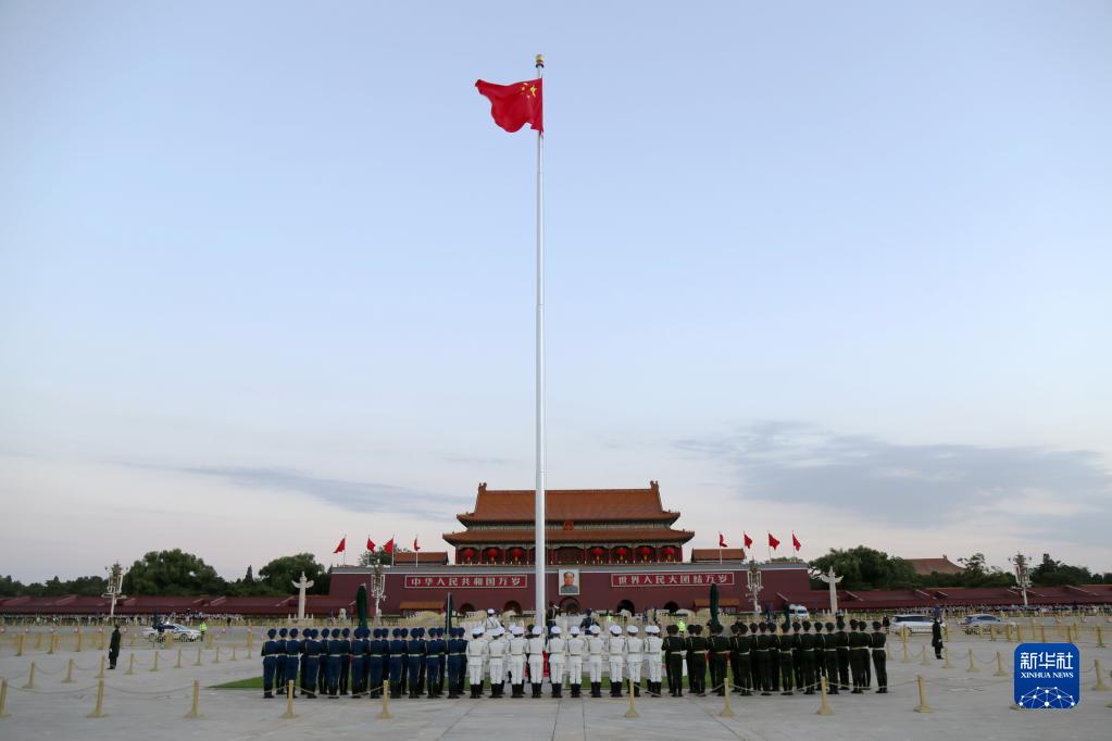 10月16日清晨,北京天安門廣場舉行升國旗儀式。