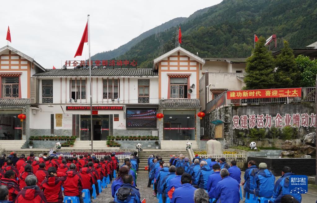 10月16日,在四川省阿壩州汶川縣映秀鎮漁子溪村,村民在收看中國共產黨第二十次全國代表大會開幕會。