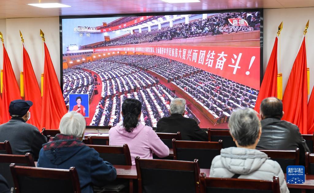 10月16日,陜西省西安市雁塔區電子城街道的黨員收看中國共產黨第二十次全國代表大會開幕會。