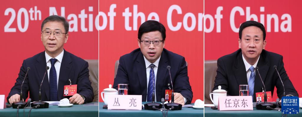 10月17日,中國共產(chǎn)黨第二十次全國代表大會新聞中心舉行記者招待會,請國家發(fā)展和改革委員會黨組成員、副主任趙辰昕,國家發(fā)展和改革委員會黨組成員、國家糧食和物資儲備局黨組書記、局長叢亮,國家能源局黨組成員、副局長任京東介紹貫徹新發(fā)展理念、構(gòu)建新發(fā)展格局、推動高質(zhì)量發(fā)展,以中國式現(xiàn)代化全面推進中華民族偉大復興有關(guān)情況,并回答記者提問(拼版照片)。