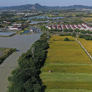 近日,浙江省湖州市吳興區八里店鎮種植的水稻迎來收獲季節,農戶操作收割機在稻田里作業,呈現一幅幅美麗的豐收圖景。