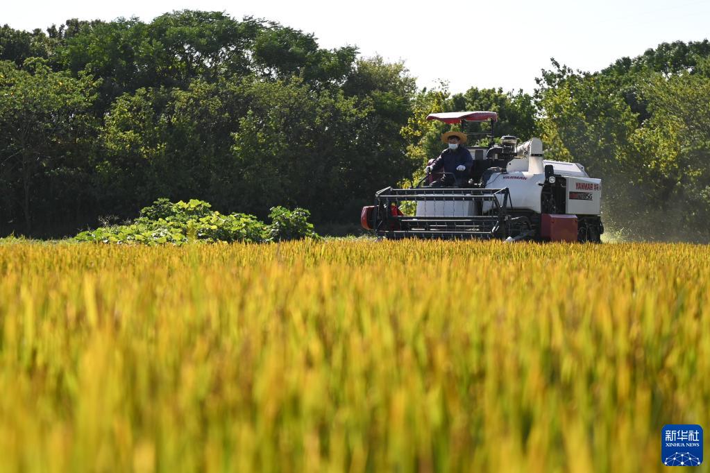 近日,浙江省湖州市吳興區八里店鎮種植的水稻迎來收獲季節,農戶操作收割機在稻田里作業,呈現一幅幅美麗的豐收圖景。