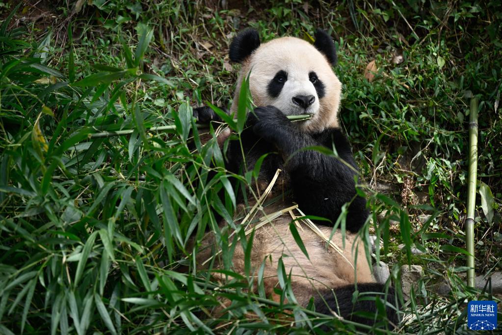 10月17日,在中國大熊貓保護研究中心雅安基地,大熊貓“京京”在吃竹子。