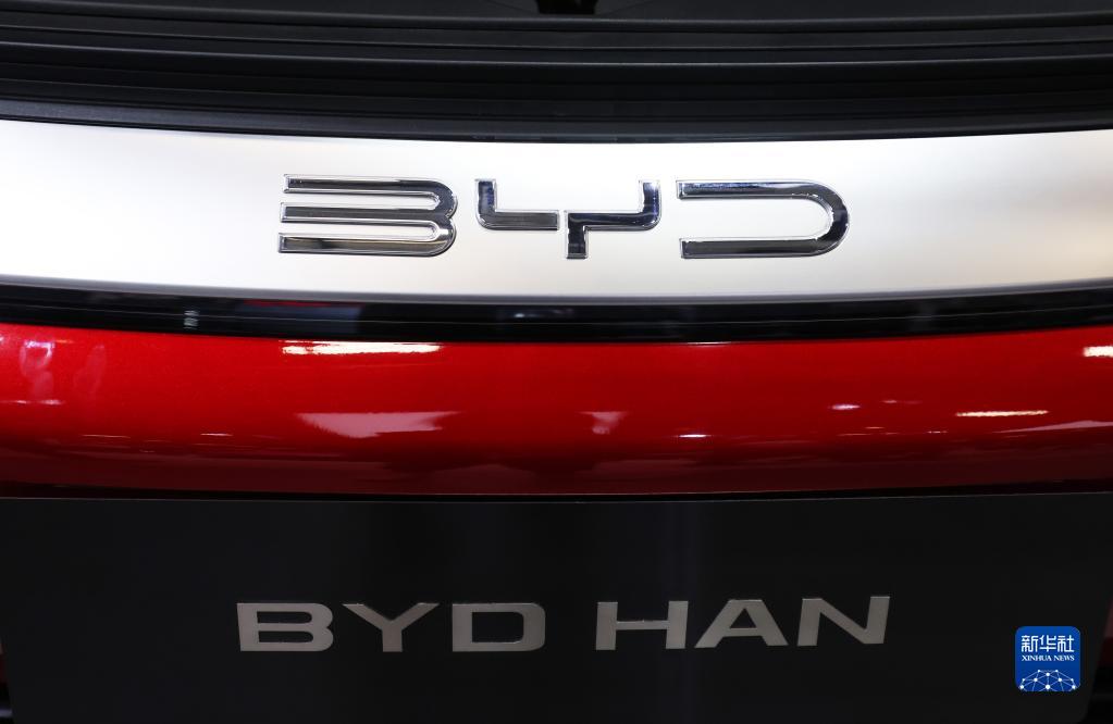 這是10月18日在法國巴黎國際車展上拍攝的比亞迪漢的標(biāo)識。