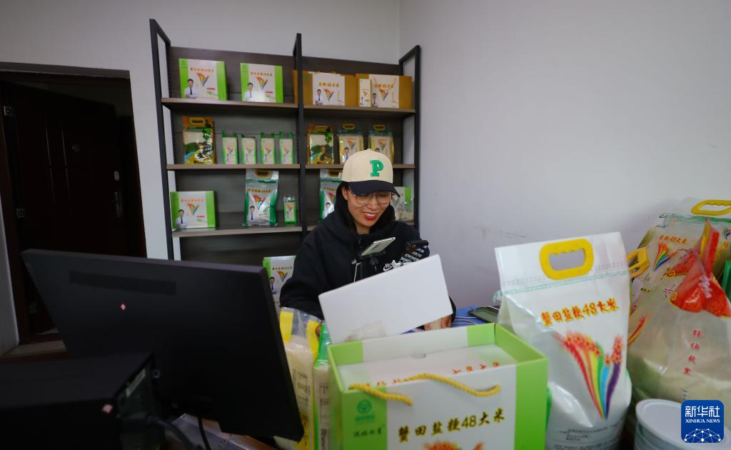 10月18日,在遼寧沈陽遼北七星米業有限公司,工作人員在網上銷售大米。