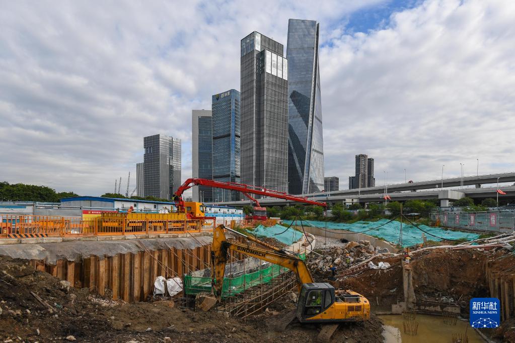由中鐵上海局承建的深圳前海月亮灣2號渠綜合治理段暗渠改明河施工進入攻堅階段(10月19日攝)。前海將“前海水城”理念貫穿整體城市設計規劃,拓寬流經前海的河流和排水渠,規劃濱水走廊,讓水與城市形成生態融合。