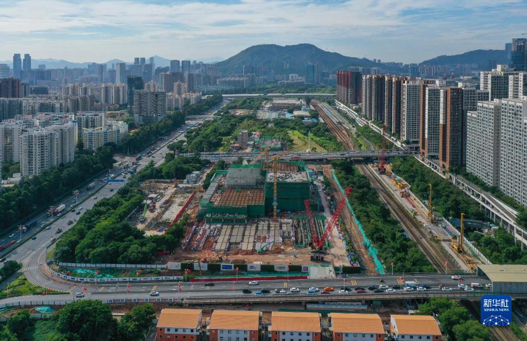 由中鐵上海局承建的深圳前海桂灣街坊商業(yè)配套項(xiàng)目交通改善工程進(jìn)展順利(10月19日攝,無(wú)人機(jī)照片)。
