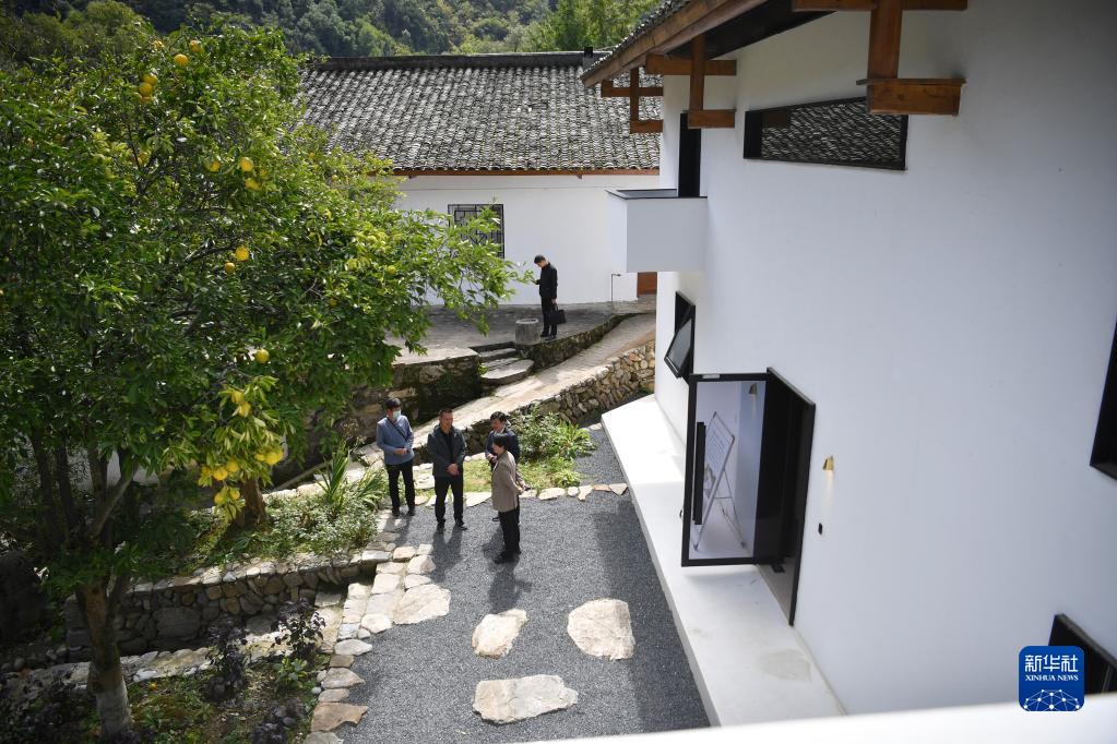 游客在位于秦嶺南麓的陜西寧陜縣漁灣村一處民宿院落內(nèi)活動(10月10日攝)。
