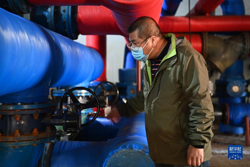 10月20日,在黑龍江省哈爾濱市呼蘭區一家供熱企業,工作人員在換熱站內查看儀表數據。