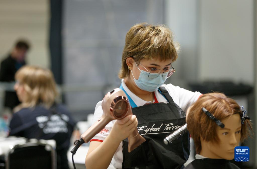 10月20日,杭州輕工技師學院沈文青在芬蘭首都赫爾辛基參加2022年世界技能大賽特別賽芬蘭賽區比賽美發項目。