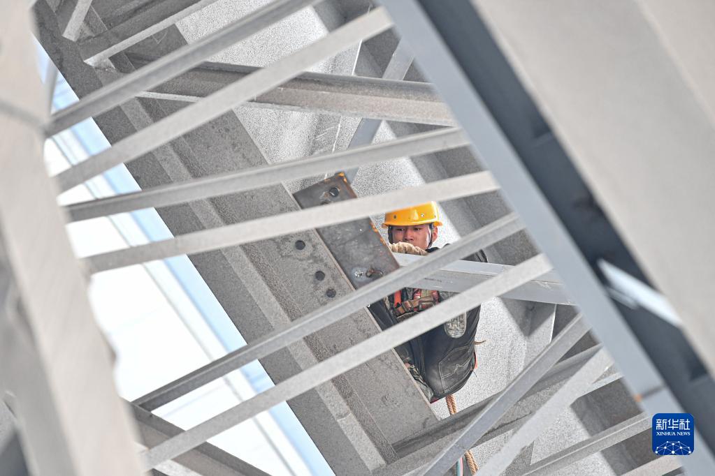 10月21日,工人在海南東方臨港產(chǎn)業(yè)園東方明陽新能源高端裝備產(chǎn)業(yè)基地項(xiàng)目工地施工。