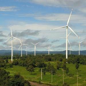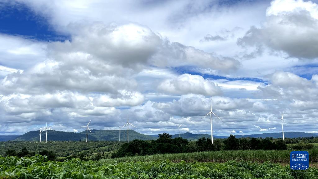 這是10月4日在泰國(guó)猜也蓬府拍攝的由中國(guó)金風(fēng)科技提供的風(fēng)力發(fā)電機(jī)。