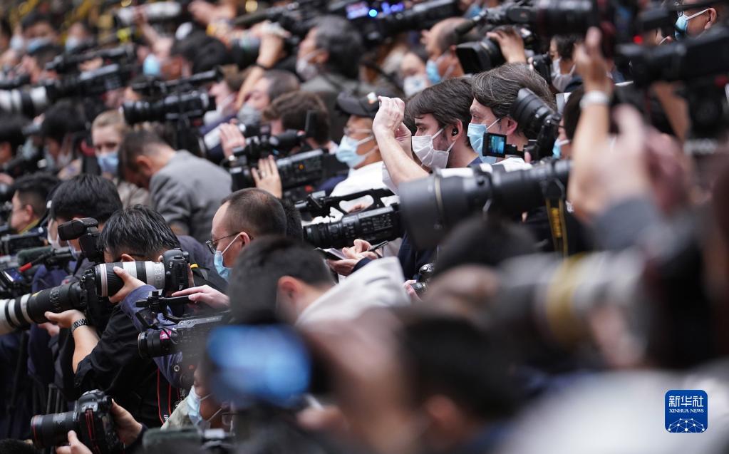 10月22日,中國共產黨第二十次全國代表大會閉幕會在北京人民大會堂舉行。這是記者在采訪拍攝。
