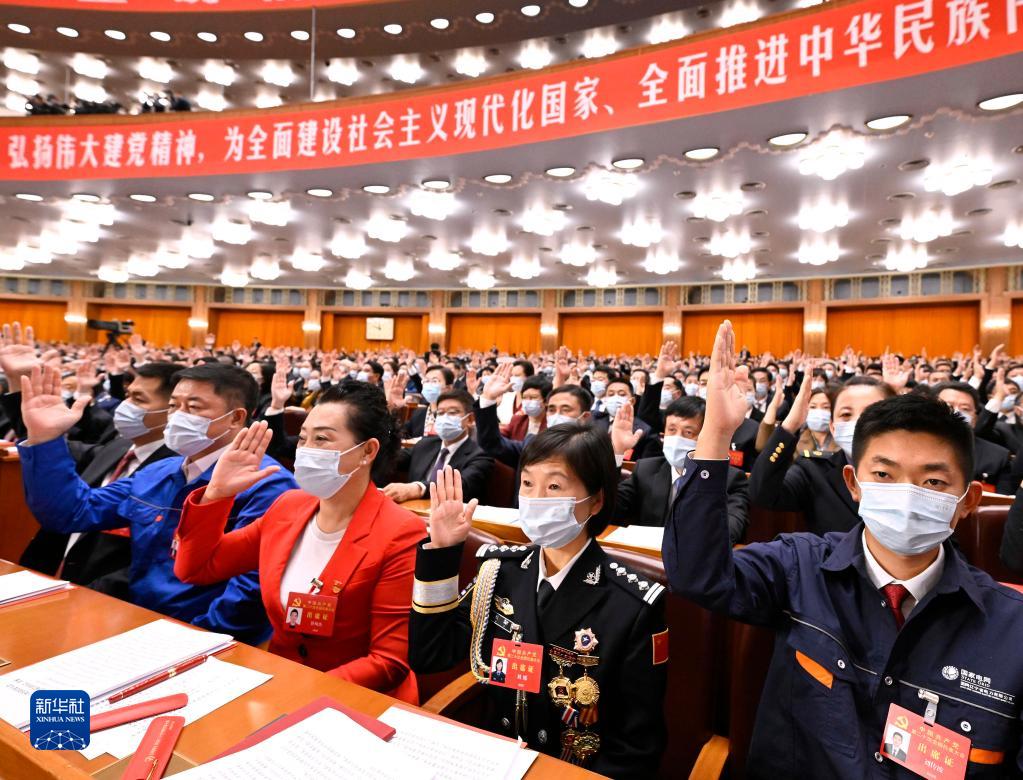 10月22日,中國共產黨第二十次全國代表大會閉幕會在北京人民大會堂舉行。這是代表舉手表決。