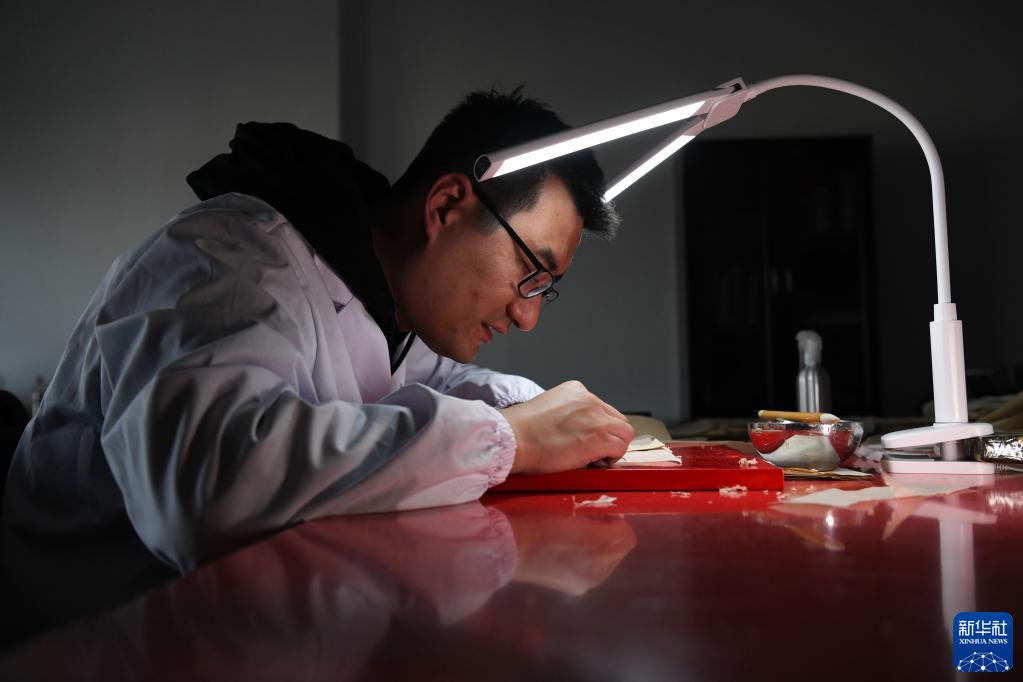 10月20日,在安徽中醫藥大學圖書館古籍部,古籍修復師茆可人在進行古籍修復。
