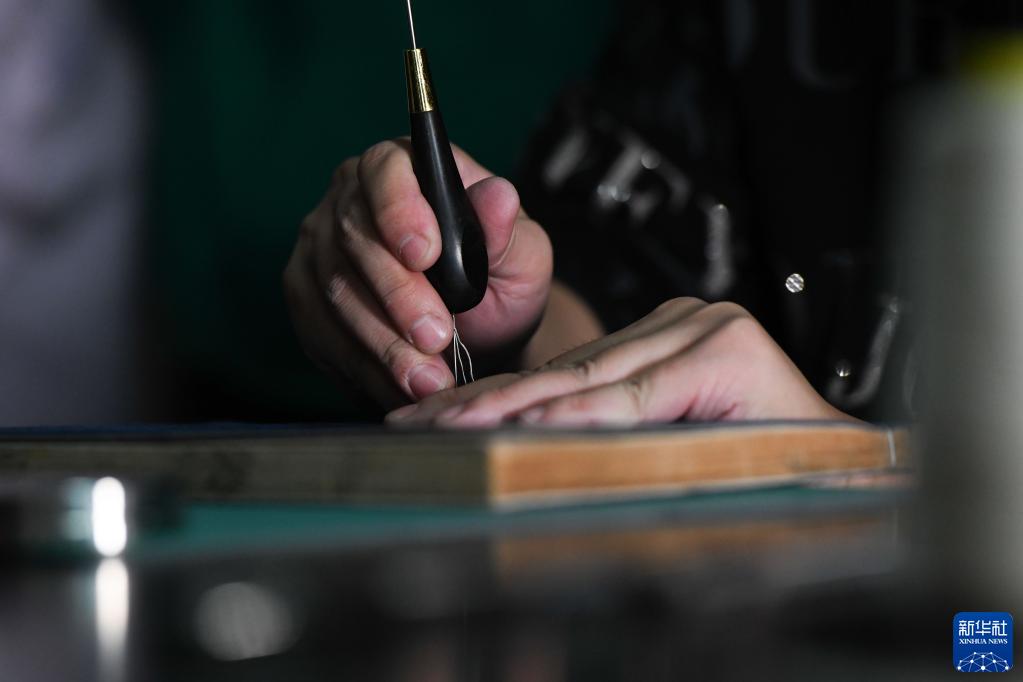 10月20日,在安徽中醫藥大學圖書館古籍部,古籍修復師茆可人在裝訂古籍。