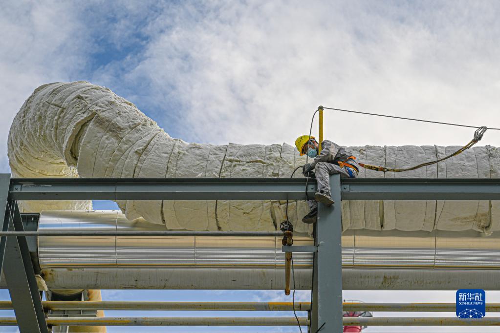 10月22日,工人在海南東方臨港產業園海南精細化工二期工程丙烯腈系列裝置項目工地施工。