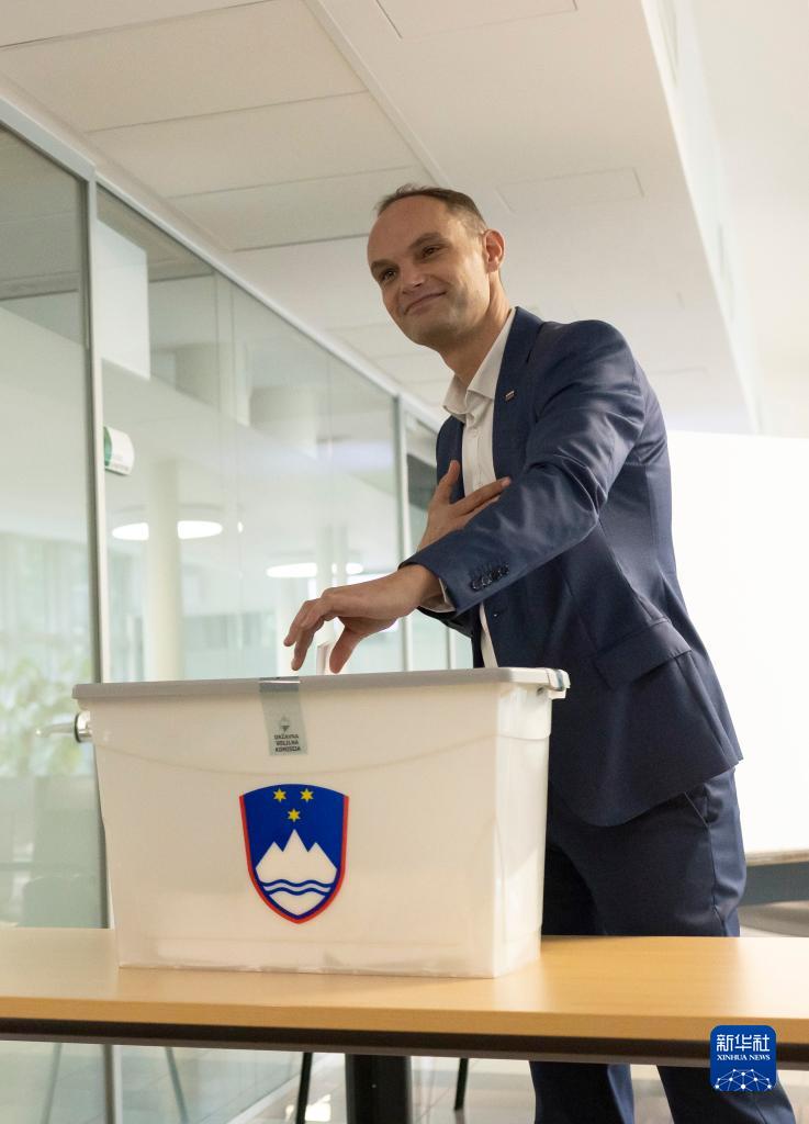 10月23日,在斯洛文尼亞盧布爾雅那的投票點(diǎn),總統(tǒng)候選人安熱·洛加爾參加總統(tǒng)選舉投票。