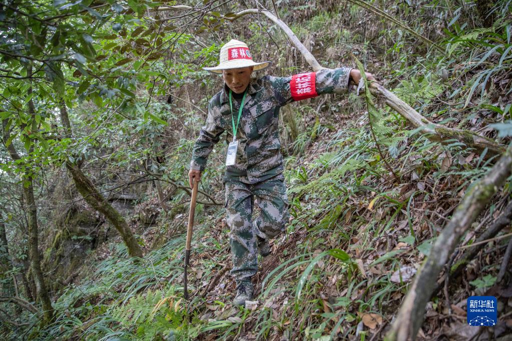 10月21日,在重慶金佛山國家級自然保護區,護林員張廷剛在巡護山林。