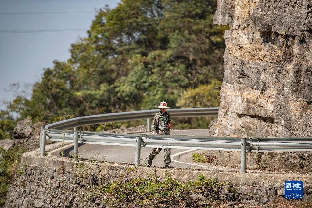 10月21日,在重慶金佛山國家級自然保護區,護林員張廷剛沿著公路巡護山林。