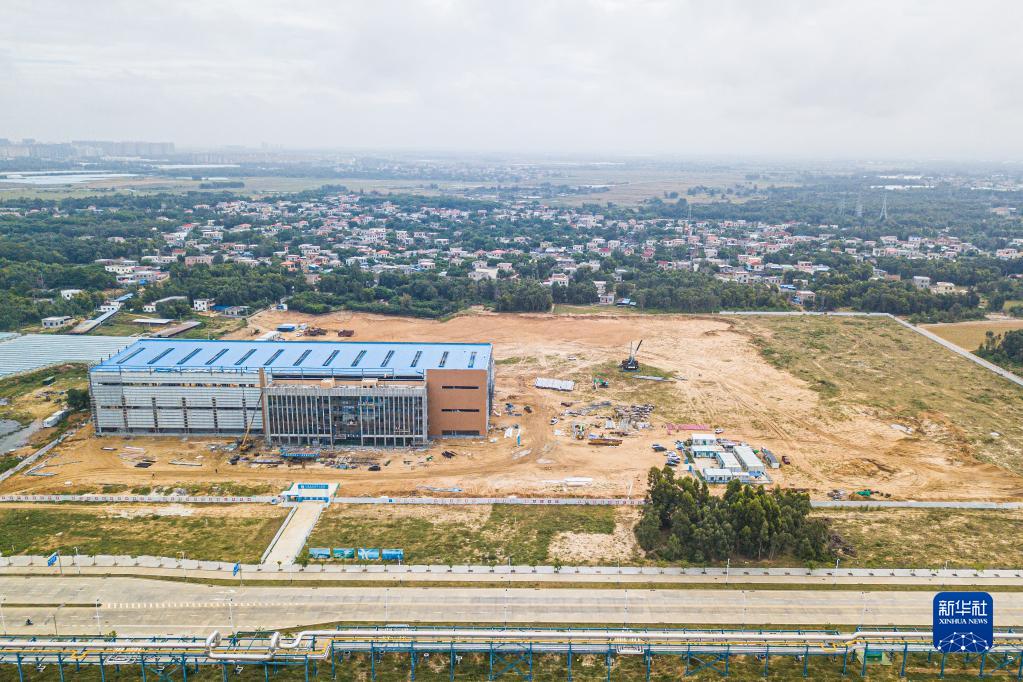 在海南東方臨港產業園拍攝的建設中的東方明陽新能源高端裝備產業基地項目(無人機照片,10月21日攝)。