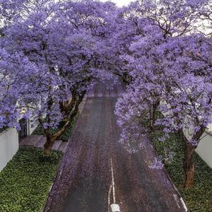 這是10月24日在南非約翰內斯堡拍攝的盛開的藍花楹(無人機照片)。