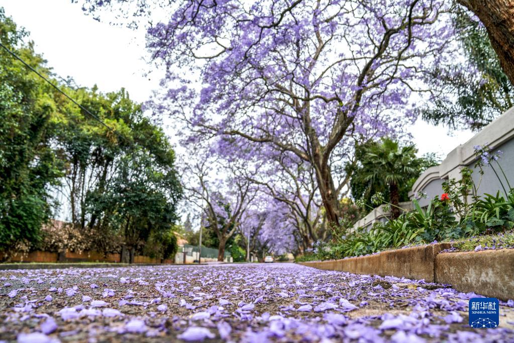 這是10月24日在南非約翰內斯堡拍攝的盛開的藍花楹。